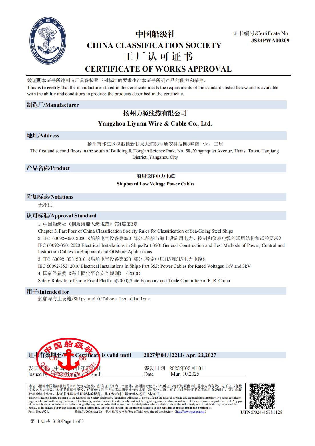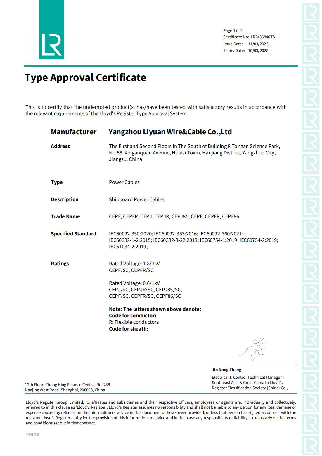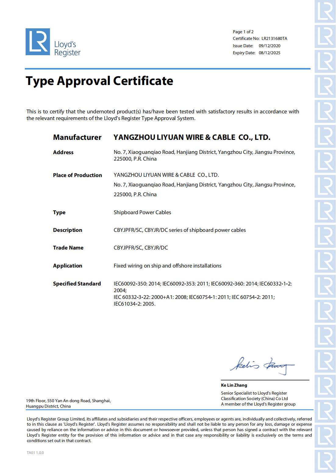 LR 分類協会証明書
